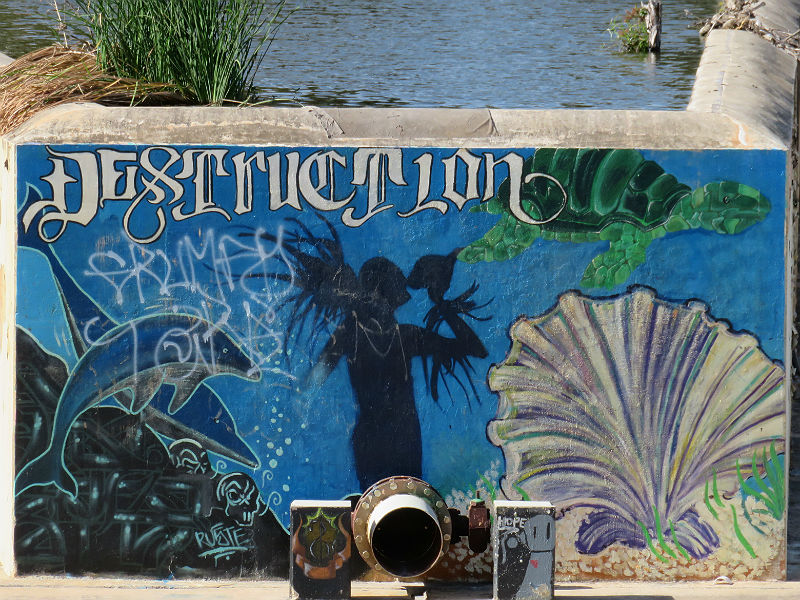 Previous ImageNext Image Elmendorf-0007 Murals turn a dam into art at Elmendorf Lake on the West Side of San Antonio.
