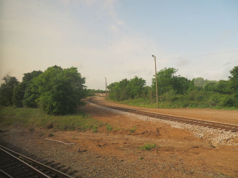 The Sunset Limited chugs past farmland and through small-town Texas as it rolls from San Antonio to Houston. The trip started on a gray, drizzly morning at Sunset Station in downtown San Antonio. The skies lightened up for a while, and then rain returned when we stopped in Houston.
