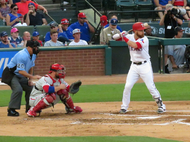 The Texas Rangers beat the Philadelphia Phillies 9-3 on Wednesday, May 17, at Globe Life Park in Arlington, Texas. It was the Rangers’ eighth-straight victory. Texas’ Jaren Hoying hit his first major league home run and reliever Austin Bibens-Dirkx pitched the ninth inning to make his major league debut.